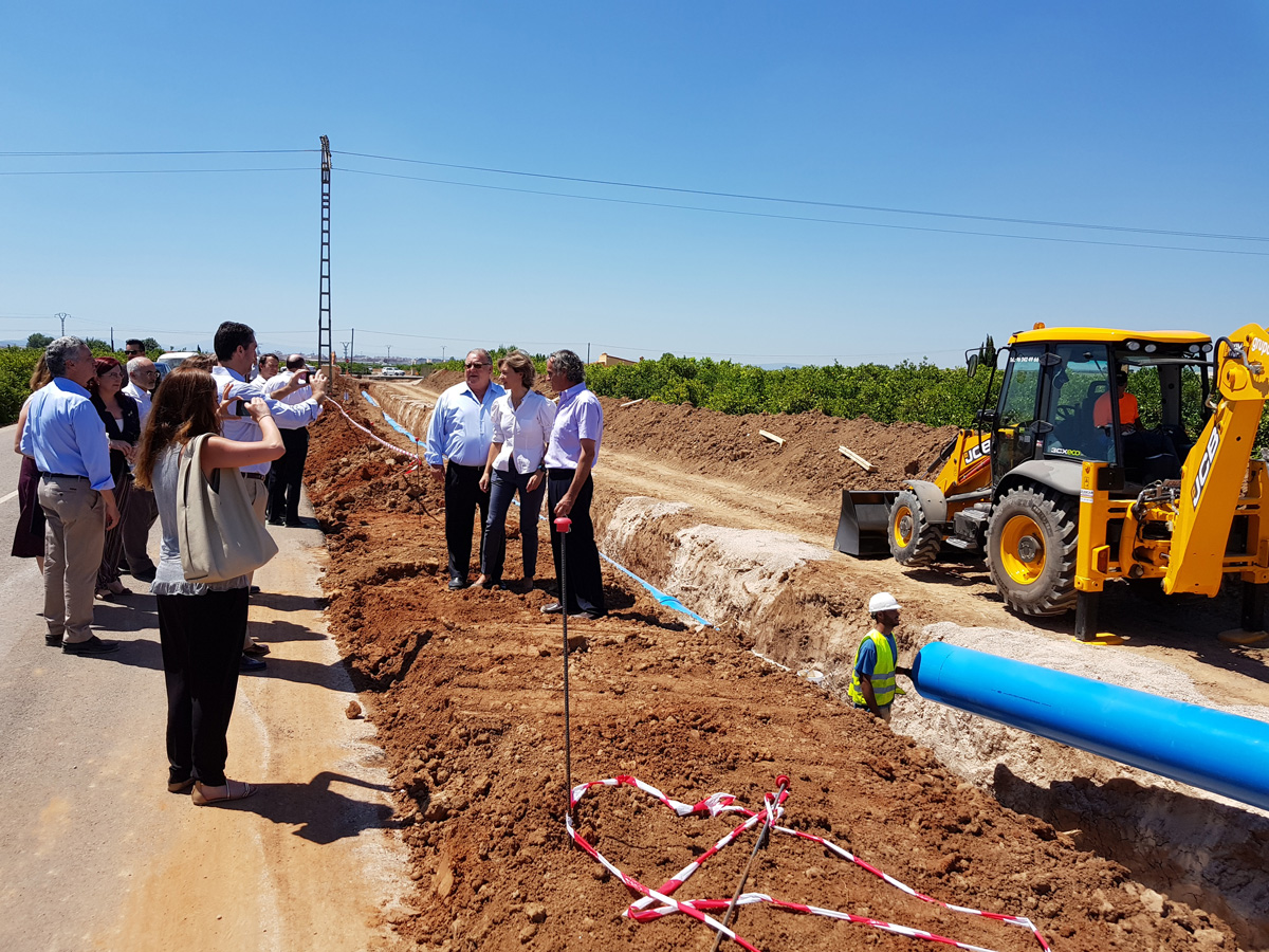 García Tejerina, que va estar acompanyada en la seua visita pel delegat del Govern a la Comunitat Valenciana i per representants municipals i del Jurat de Reg d’Algemesí, va informar que s’ha invertit al voltant de 700.000 € per a la col·locació de la canonada de transport d’aquest sector, que proveirà de reg per goteig a 3.557 fanecades de 894 parcel·les diferents.
